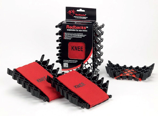 The UK-designed cushioning kneepads, which are winners of the '2012 SATRA Best Innovation in Occupational PPE Award', feature a soft and flexible TPE (thermo plastic elastomer) leaf-spring set within a honeycomb matrix. This new 'Redbacks Cushioning Technology' distributes body weight evenly, elevating the knees to relieve back pain and reduce pressure on knee, leg, ankle and foot joints, while minimising the risk of possible injury from sharp or penetrating objects.